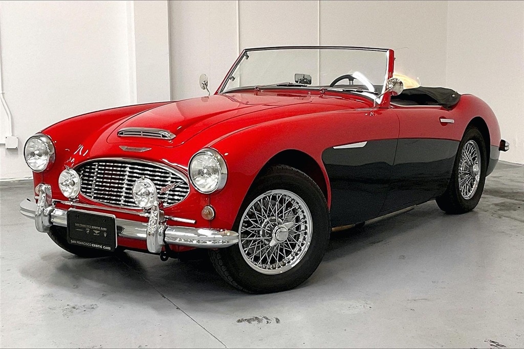 San Francisco Exotic Cars is proud to offer this beautifully restored 1961 Austin-Healey 3000 BT7 Mk I, a two-seat British roadster finished in a striking two-tone red and black exterior over black leather with red piping. This vehicle underwent a comprehensive refurbishment under enthusiast ownership and is offered with a clean California title and a British Motor Industry Heritage Trust certificate.