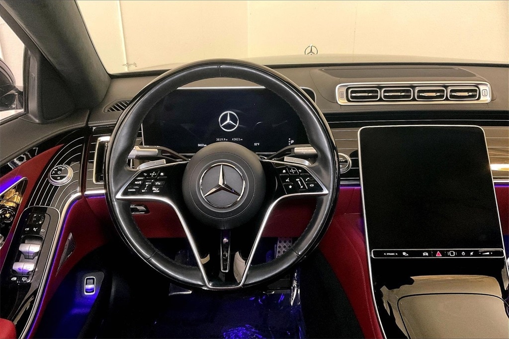 San Francisco Exotic Cars presents this luxurious 2021 Mercedes-Benz S580 4MATIC in Black over a Carmine Red/Black Exclusive Nappa Leather interior with 43,597 miles. This flagship sedan offers cutting-edge technology, supreme comfort, and confident performance through its 4.0L V8 Bi-Turbo mild-hybrid drivetrain paired with 4MATIC all-wheel drive.