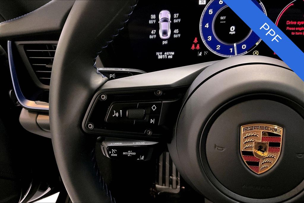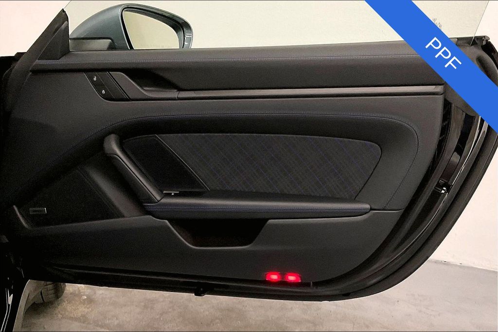 San Francisco Exotic Cars presents this driver-focused 2025 Porsche 911 Carrera T finished in Jet Black Metallic over a Carrera T Interior Package in Gentian Blue, showing just 3,810 miles.